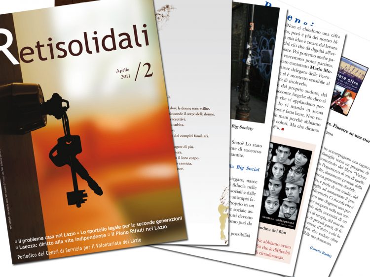 La copertina e le pagine della rivista impaginate da noi. Potete trovare il numero completo della rivista RETI SOLIDALI in pdf sul Portale del Volontariato del Lazio.